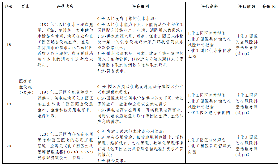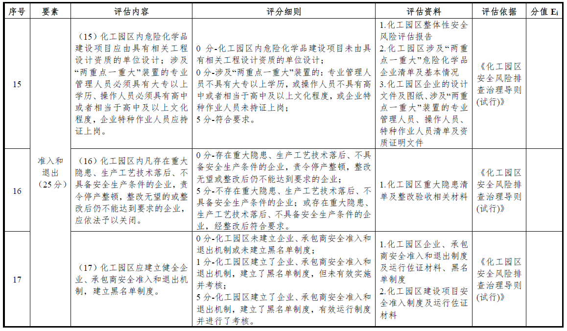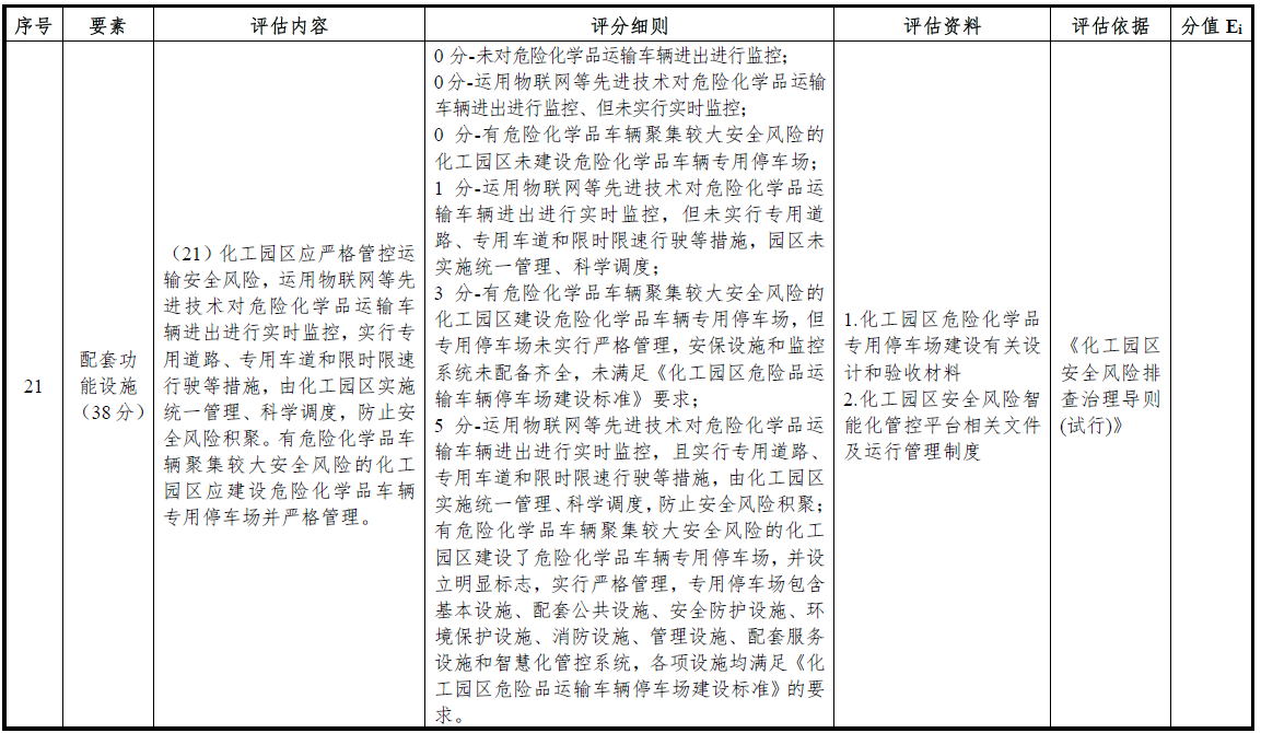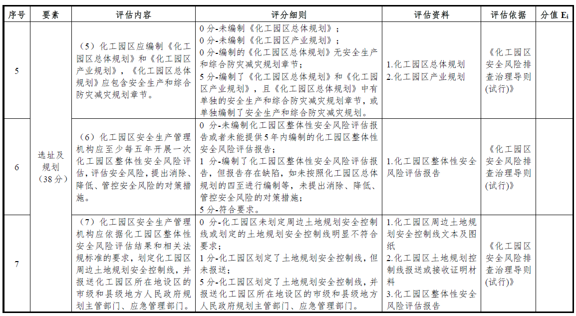 (三)建立化工园区安全风险等级动态调整机制。各地要对照《化工园区安全风险评估表》和《化工园区安全整治提升“十有两禁”释义》,每年对照开展一次自评自改。省安委办将实施持续帮扶提升和安全风险等级动态调整机制。开展专家指导服务,按照国家和省分级负责的原则,对全省园区开展一次全覆盖指导服务,动态调整园区安全风险等级,并建立问题交办、压实责任和闭环整改机制。8月底前,国家对湖州省际承接产业转移示范区安吉分区化工园区、南湖区化工集聚区、绍兴柯桥滨海工业区化工集聚区和丽水经济技术开发区等4个园区开展指导服务;12月底前,省安委办对剩余园区开展指导服务。支持创建较低安全风险等级园区,按照示范带动、批次推进的原则,选取基础条件较好、危化品(化工)企业和重大危险源数量较多、发展空间较大的化工园区创建较低安全风险等级园区。在各市推荐的基础上,确定萧山临江高新技术产业开发区新材料产业园等21个化工园区作为今年较低安全风险等级创建园区。