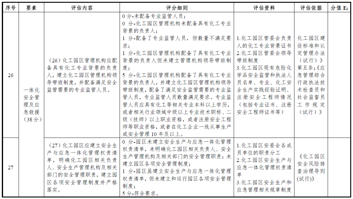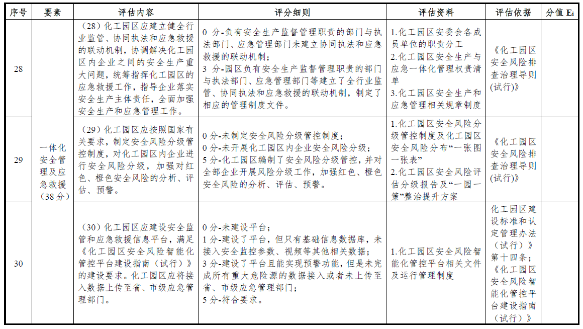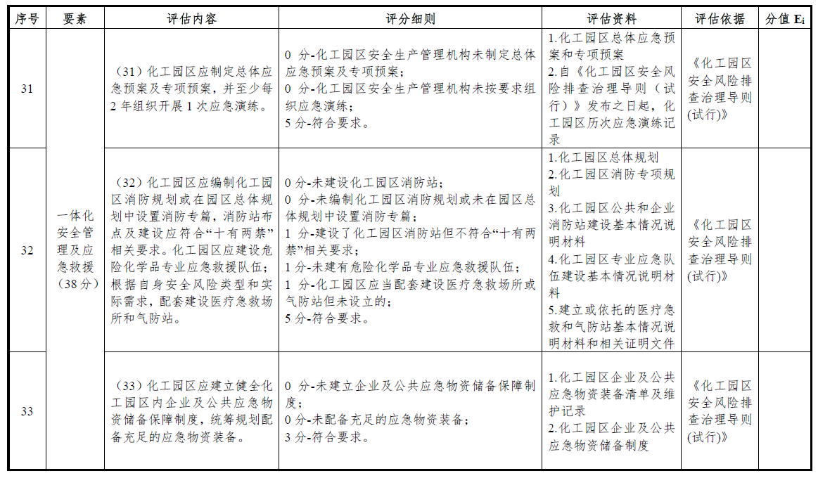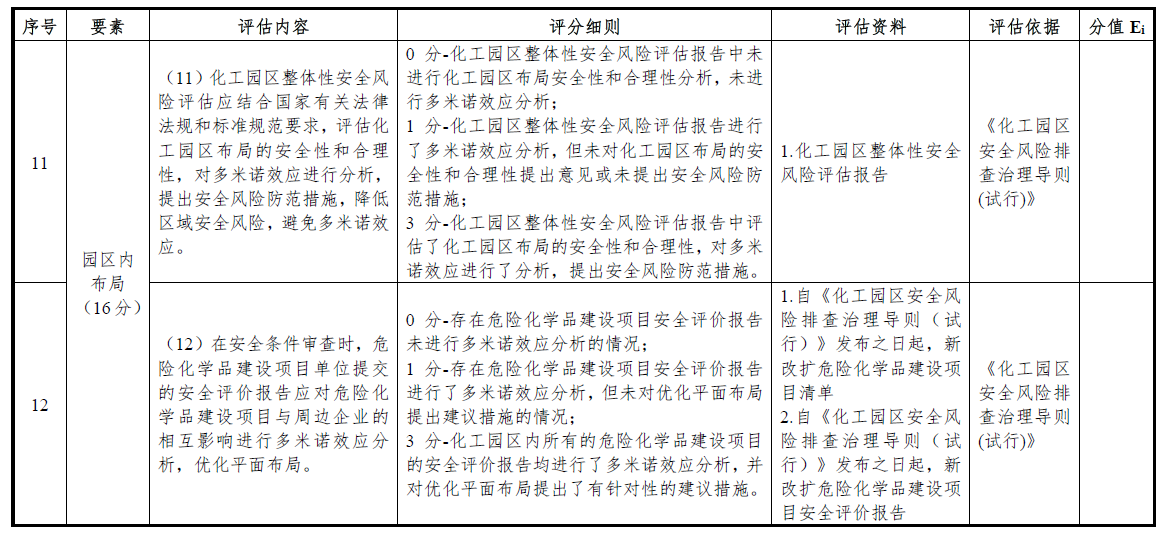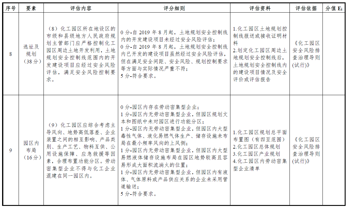 (三)建立化工园区安全风险等级动态调整机制。各地要对照《化工园区安全风险评估表》和《化工园区安全整治提升“十有两禁”释义》,每年对照开展一次自评自改。省安委办将实施持续帮扶提升和安全风险等级动态调整机制。开展专家指导服务,按照国家和省分级负责的原则,对全省园区开展一次全覆盖指导服务,动态调整园区安全风险等级,并建立问题交办、压实责任和闭环整改机制。8月底前,国家对湖州省际承接产业转移示范区安吉分区化工园区、南湖区化工集聚区、绍兴柯桥滨海工业区化工集聚区和丽水经济技术开发区等4个园区开展指导服务;12月底前,省安委办对剩余园区开展指导服务。支持创建较低安全风险等级园区,按照示范带动、批次推进的原则,选取基础条件较好、危化品(化工)企业和重大危险源数量较多、发展空间较大的化工园区创建较低安全风险等级园区。在各市推荐的基础上,确定萧山临江高新技术产业开发区新材料产业园等21个化工园区作为今年较低安全风险等级创建园区。