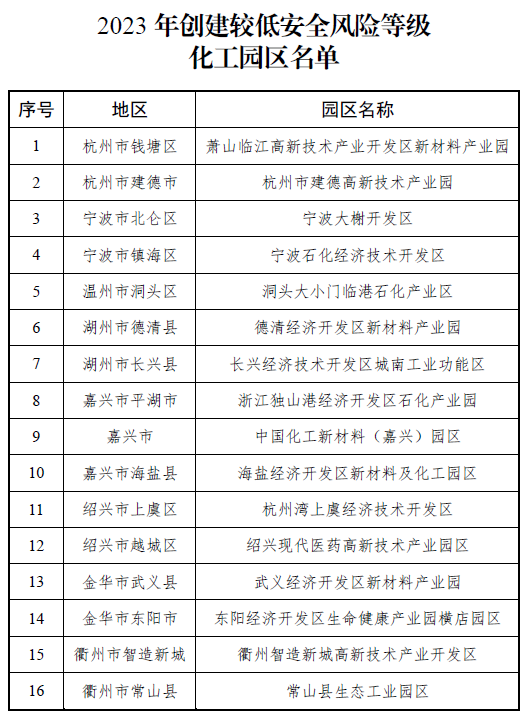 浙江推动全省化工园区安全整治提升工作,2023年创建21个较低安全风险等级化工园区!
