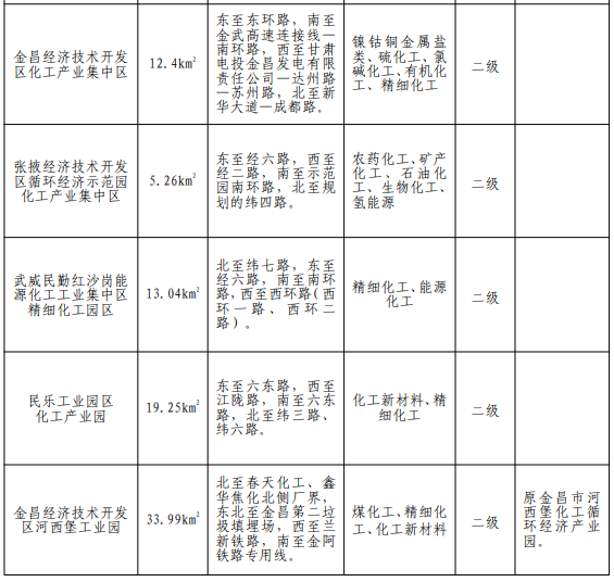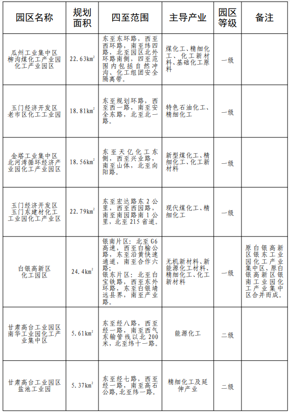 甘肃新认定化工园区名单公布!