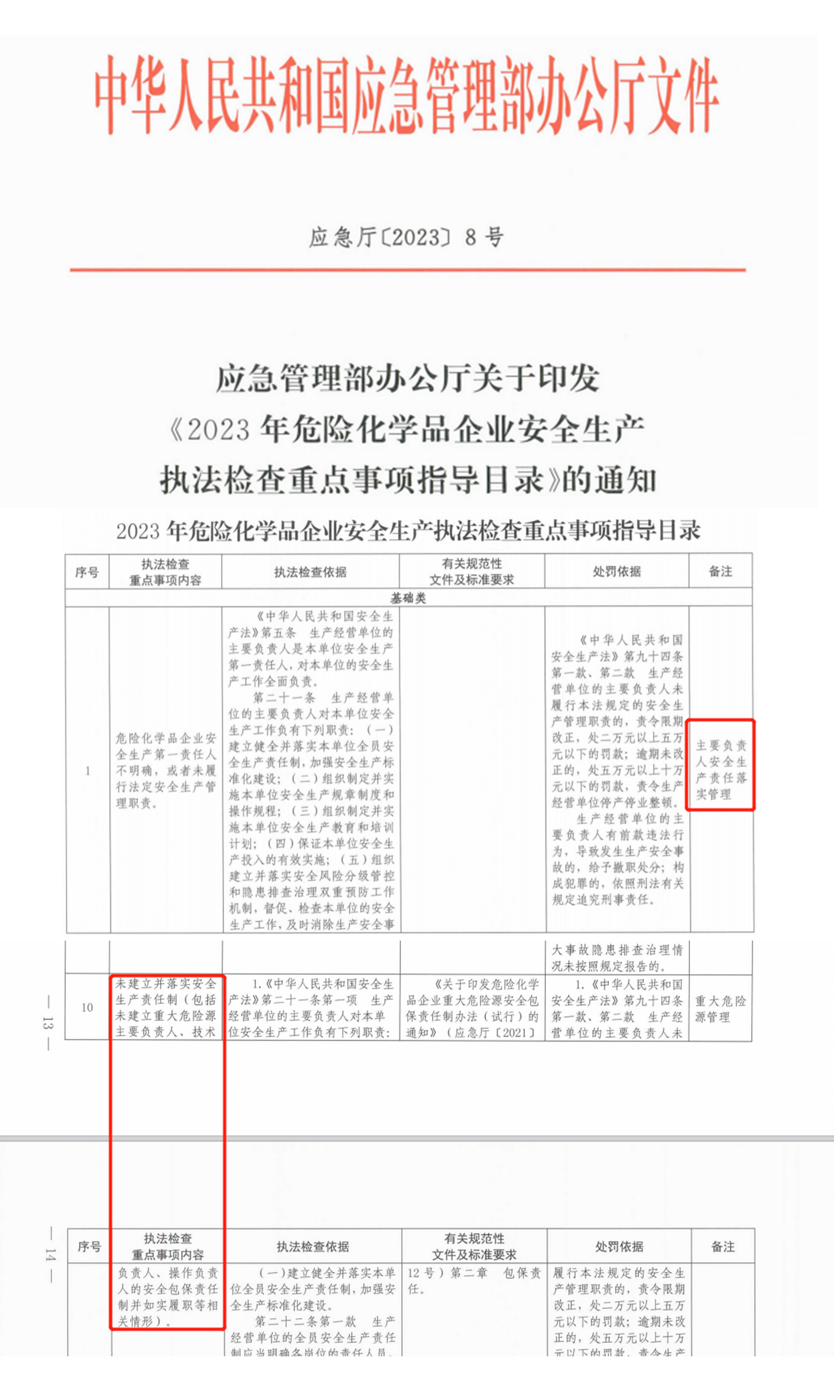 4月14日,应急管理部发布了应急厅[2023] 8号)《2023年危险化学品企业安全生产执法检查重点事项指导目录》(以下简称《指导目录》)。应急厅8号文,要求地方应急管理部门要严格对照指导目录,突出重点,精准执法。要求各省级应急管理部门及时将本通知要求传达给辖区内的危险化学品企业,引导企业主动履行安全生产主体责任,不断提升安全水平和保障能力,并于2024年1月底前将落实情况报送应急管理部。