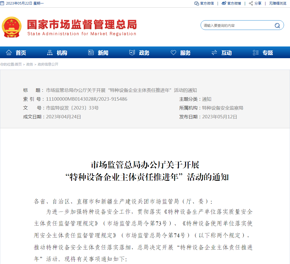 关于“特种设备企业主体责任推进年”活动的时间安排