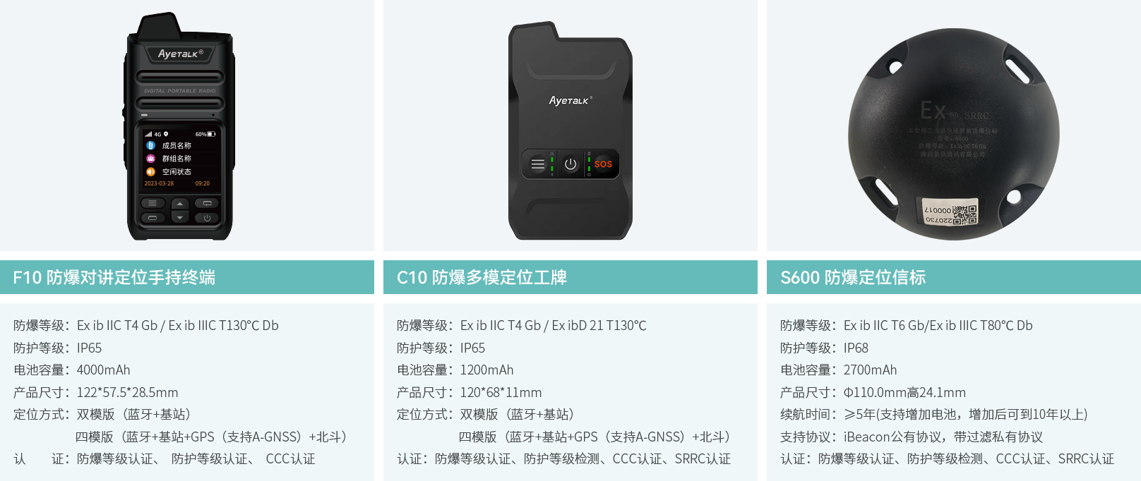与人员定位系统配套的本安型防爆对讲机,多模定位工牌,定位信标拥有工业级防爆性能,适用于各种高低温环境及危险场所。