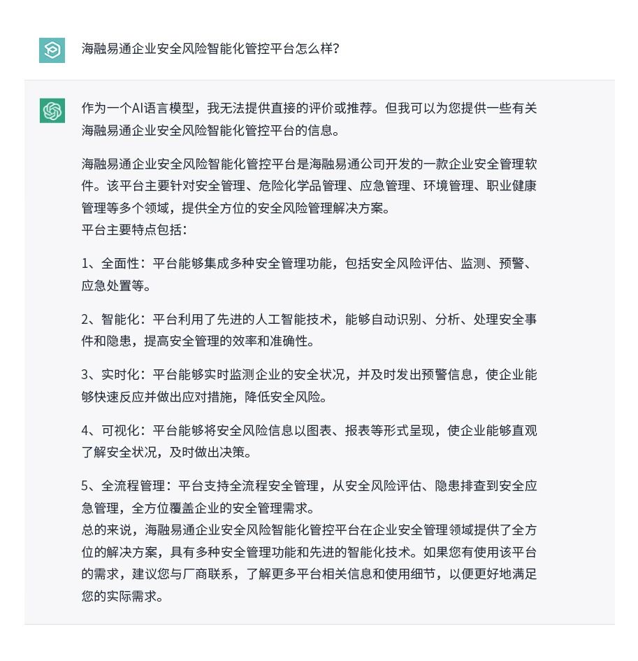 ChatGPT:是的,我了解企业安全风险智能化管控平台。